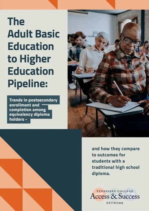 The Adult Basic Education to Higher Education Pipeline explores trends in postsecondary enrollment and completion among equivalency holders by comparing outcomes to students with a traditional diploma to help identify potential policies and interventions for Tennesseans with an equivalency diploma.
